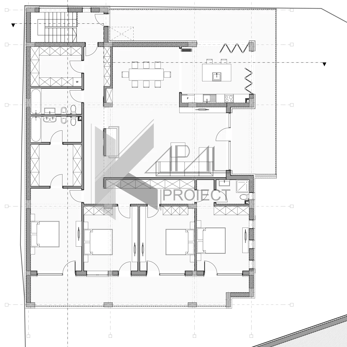 Etaj 2 – Zonă de noapte + bucătărie